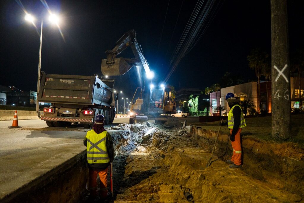 Com o retorno do clima seco em Florianópolis, as obras de triplicação da SC-401, principal acesso ao Norte da Ilha, seguem em ritmo acelerado. Para reduzir o impacto no trânsito da rodovia mais movimentada de Santa Catarina, a maior parte dos serviços está sendo realizada no período noturno.